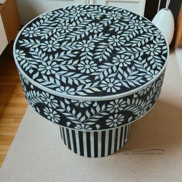 Transform your living space with the timeless elegance of our Bone Inlay Center Table – a stunning fusion of art, heritage, and functionality. Meticulously handcrafted by skilled artisans, this table showcases the beauty of intricate bone inlay work, thoughtfully arranged to create captivating floral, geometric, or stripe patterns.