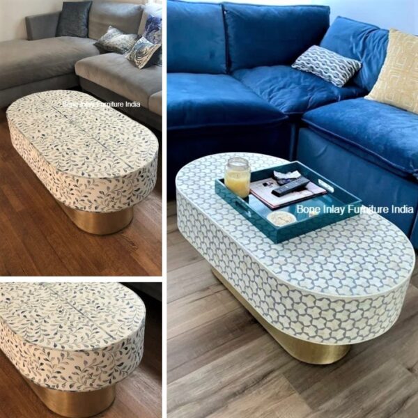 Bone Inlay Oval Coffee Table – Graceful Form Meets Artisan Craft