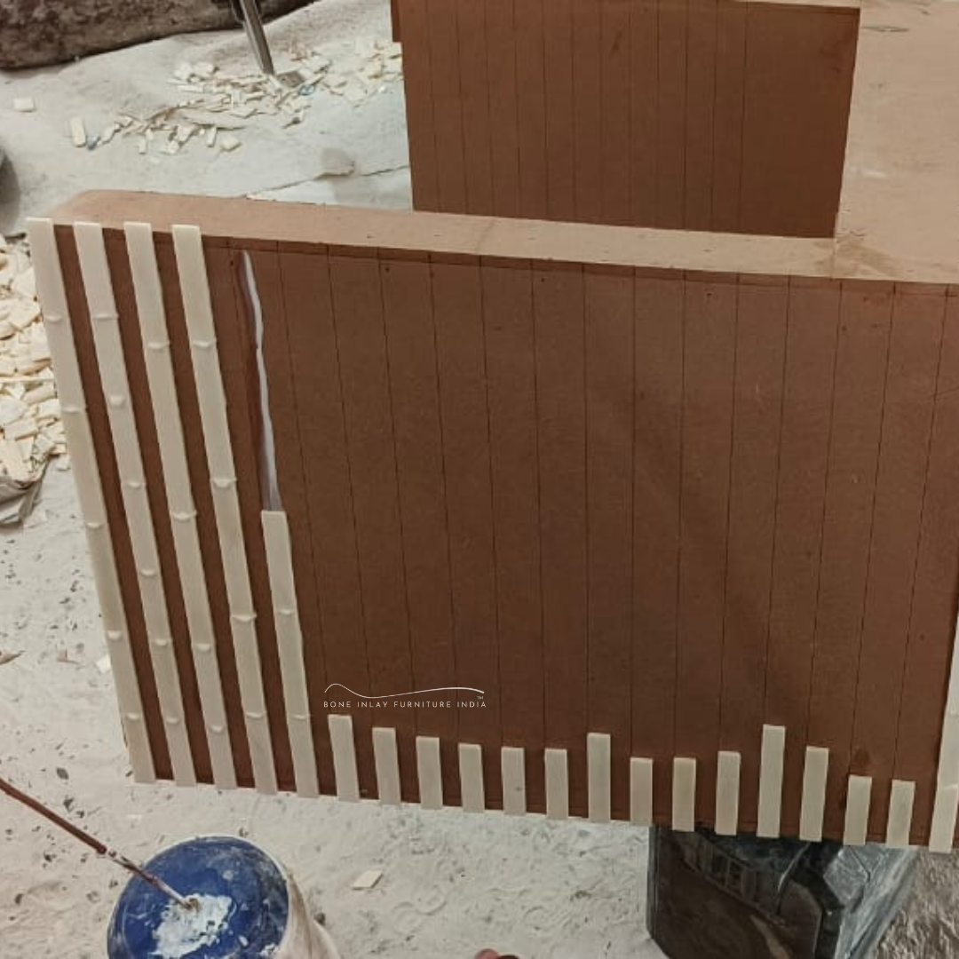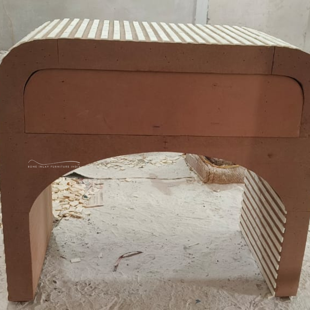 Infuse your interiors with bold beauty and exquisite craftsmanship with our Bone Inlay Side Table – a stunning piece handcrafted to bring timeless elegance to your space. Every inch of this table showcases intricately hand-inlaid camel bone, forming striking striped patterns that reflect traditional artistry blended with contemporary design.